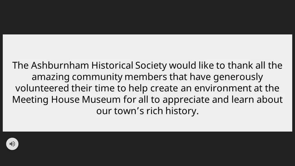 The Ashburnham Historical Society and 1791 Meeting House Museum are always on the lookout for general help, specialty services, resources and items of all kinds. If you enjoy history or just enjoy getting involved and giving to a well deserving organization, please consider volunteering!